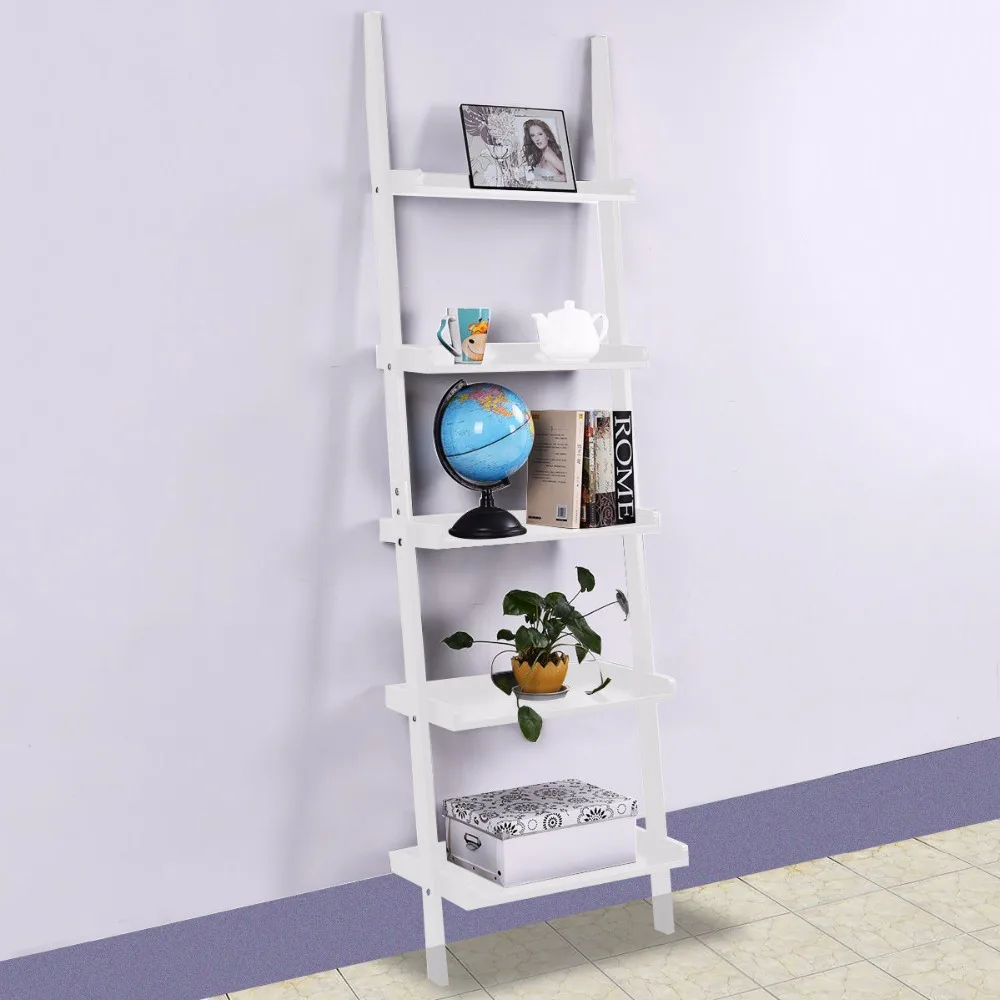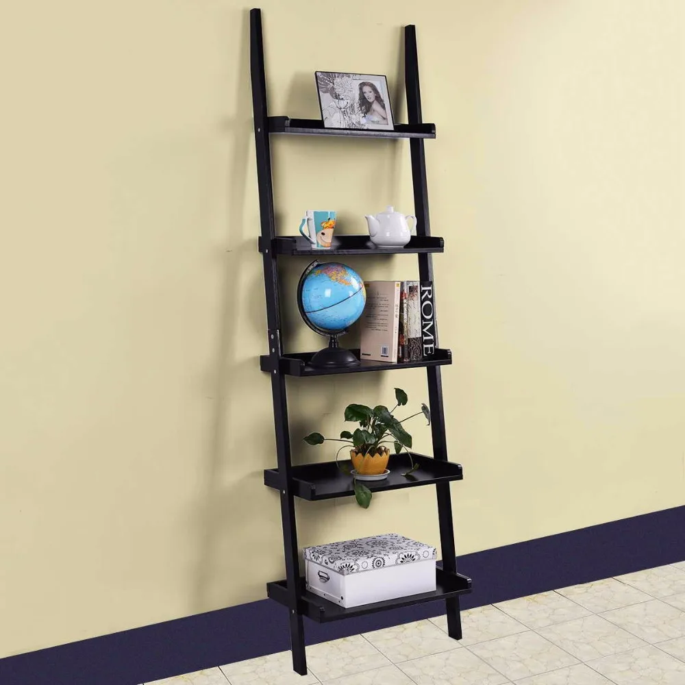 Modern 5-Tier Bookcase Bookshelf Leaning Wall Pants Shelf Ladder Storage Display Home Furniture Wal