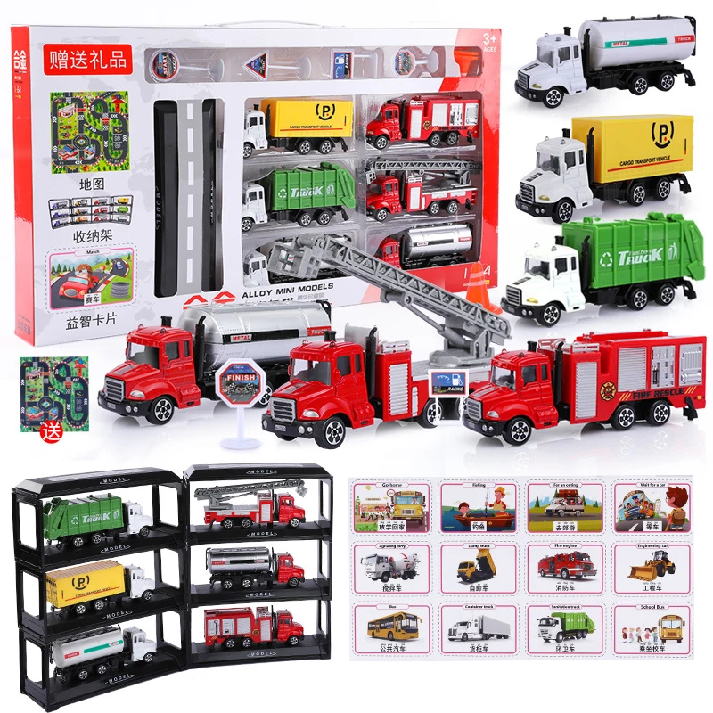 alloy car model simulation engineering vehicle excavator fire ladder car model set Included Learnin