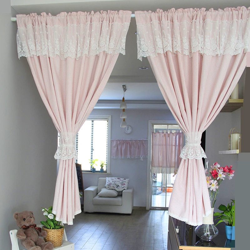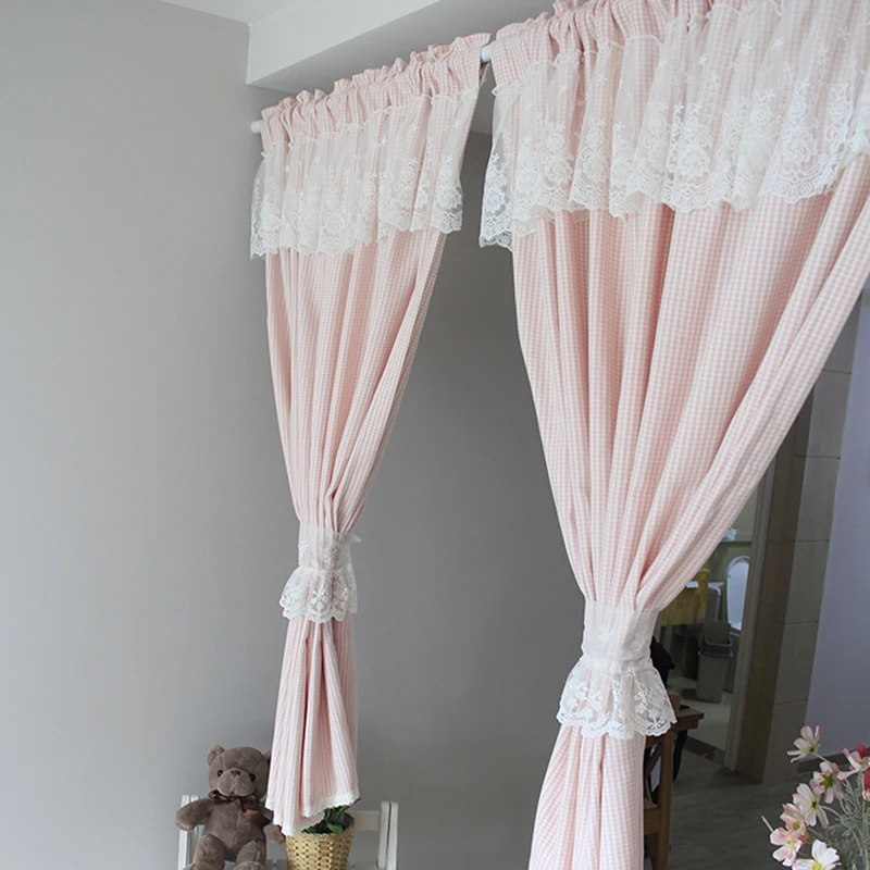 Senisaihon Korean Polyester Kitchen Curtains Pink Embroidered Door Curtains Decorative short Curtai